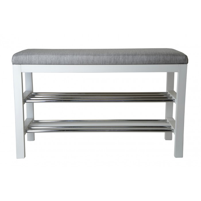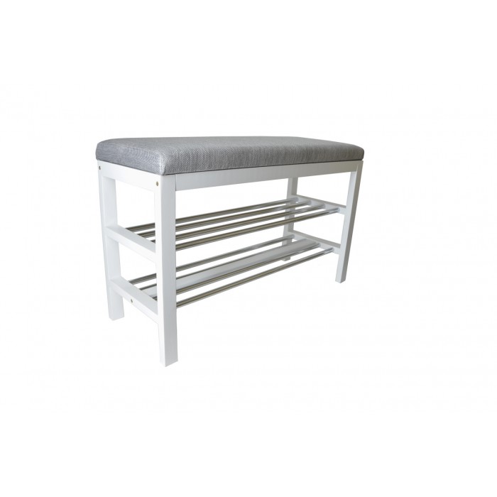 Опис до Банкетка дерев'яна біла з м'яким сидінням і полками під взуття