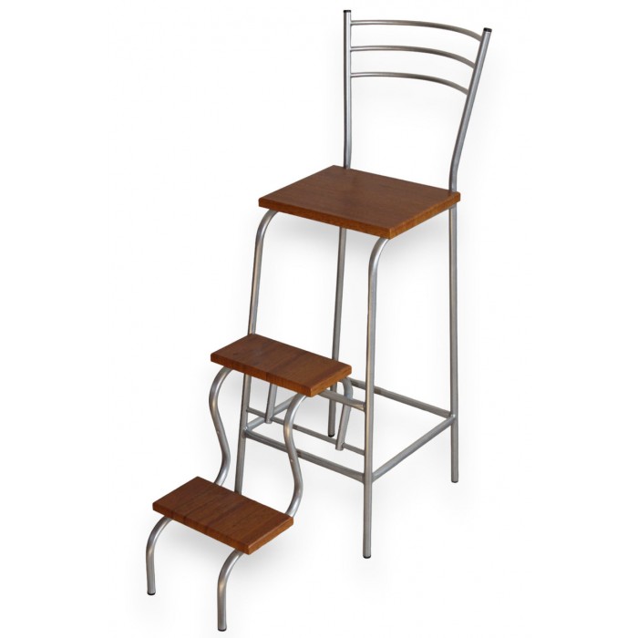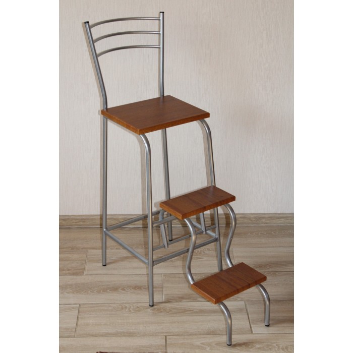Опис до Стілець драбина трансформер Хром / горіх