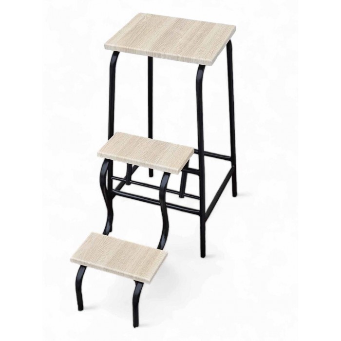 Драбина на три ступені табурет 65 см чорний/дуб молочний