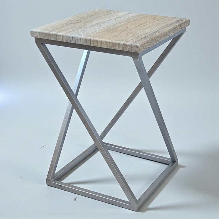 Табурет в стилі лофт «Marble» дуб Сонома/хром – металевий табурет-підставка