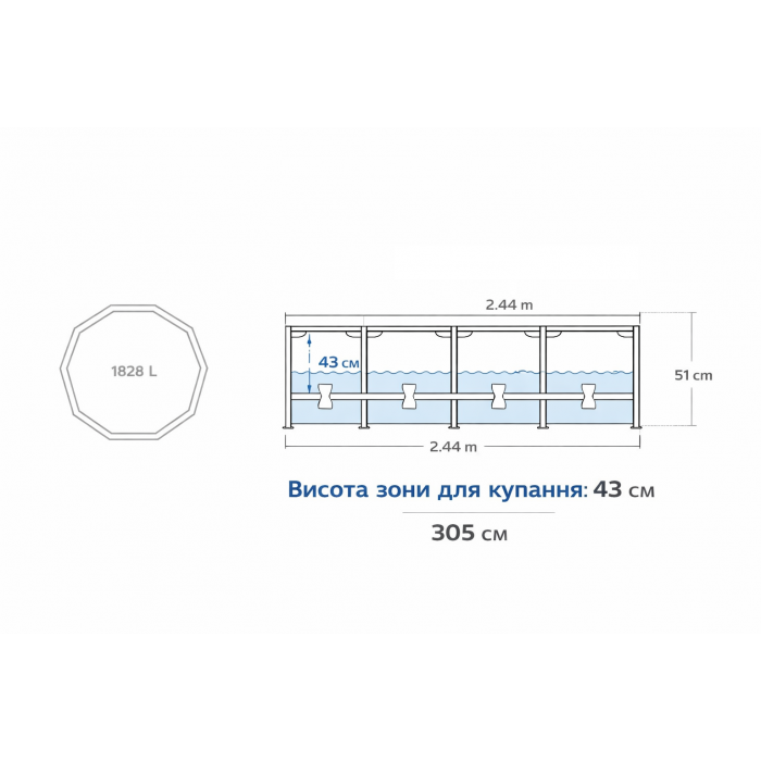 Характеристики для Купить каркасный бассейн Intex 28205 244×51 см