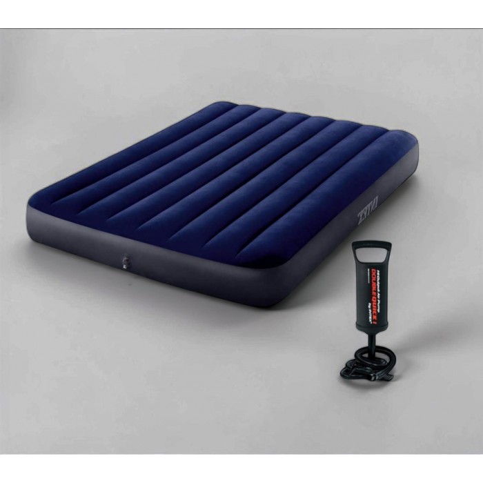 Описание к Двуспальный надувной матрас Intex 183×203×25 см с насосом